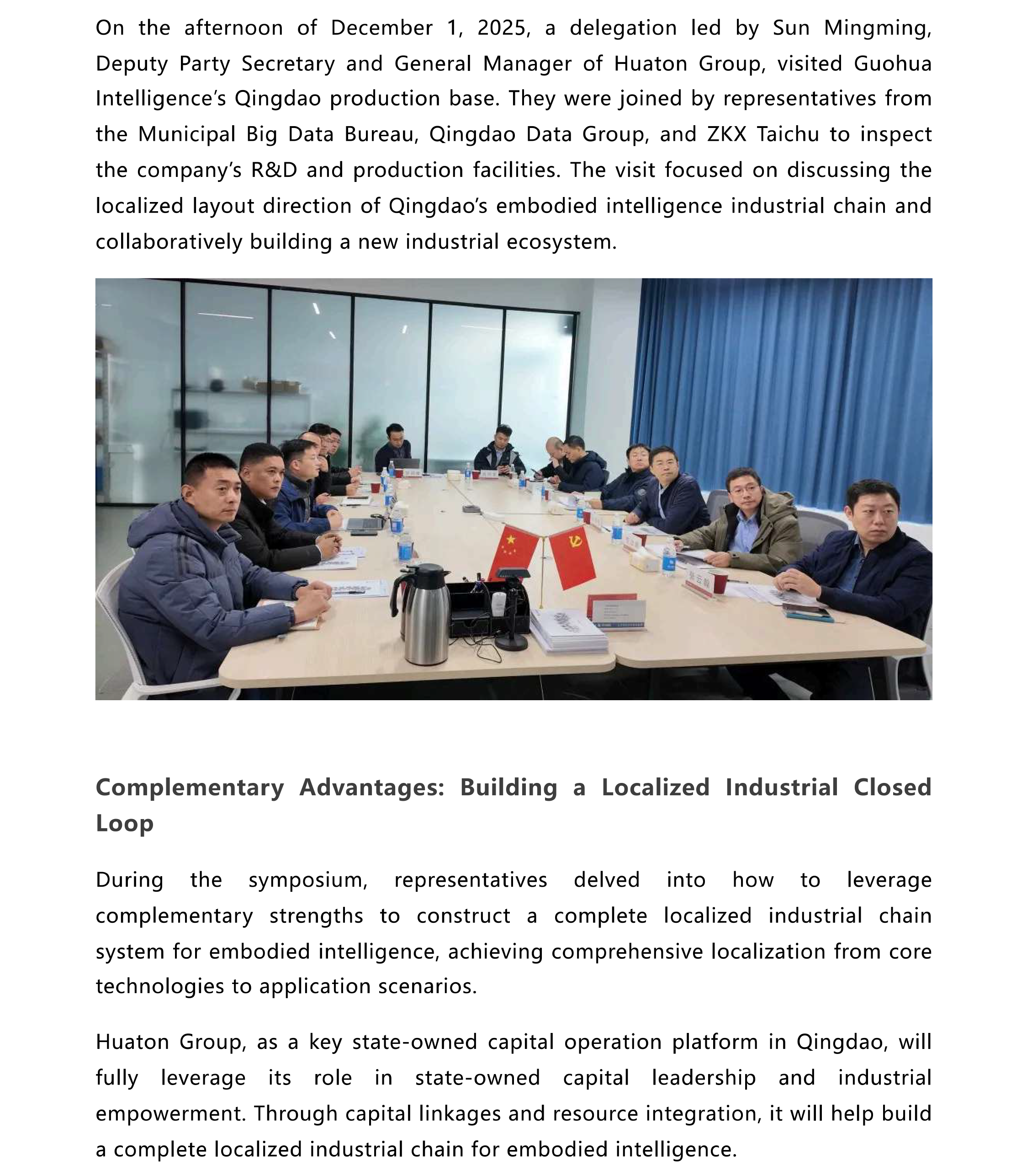 Huaton Group Leaders Visit Guohua Intelligence, Strengthening Localized Layout of Qingdao's Embodied Intelligence Industrial Chain