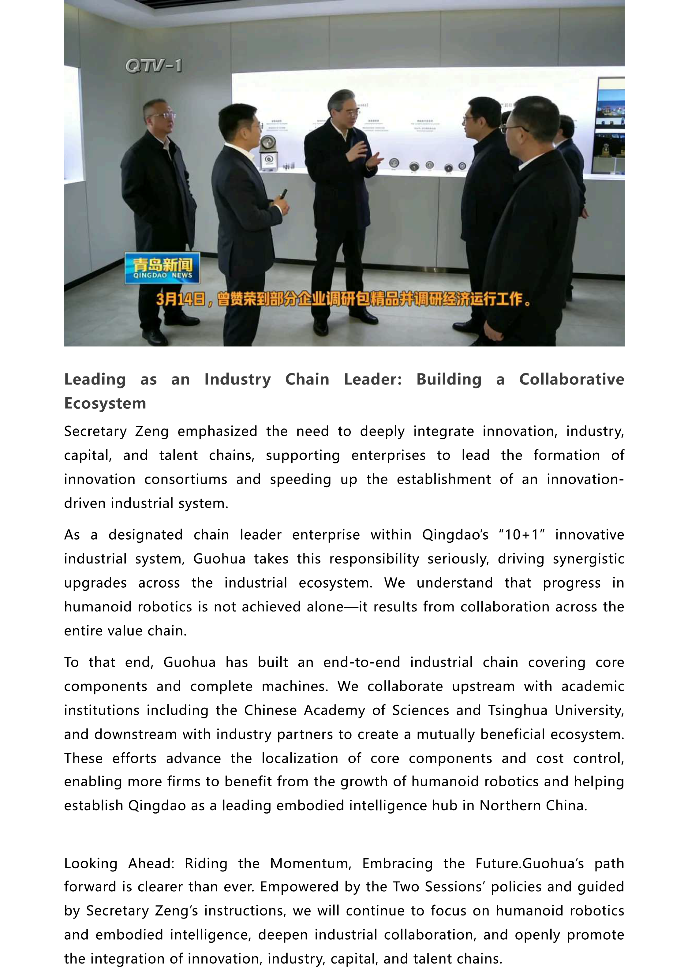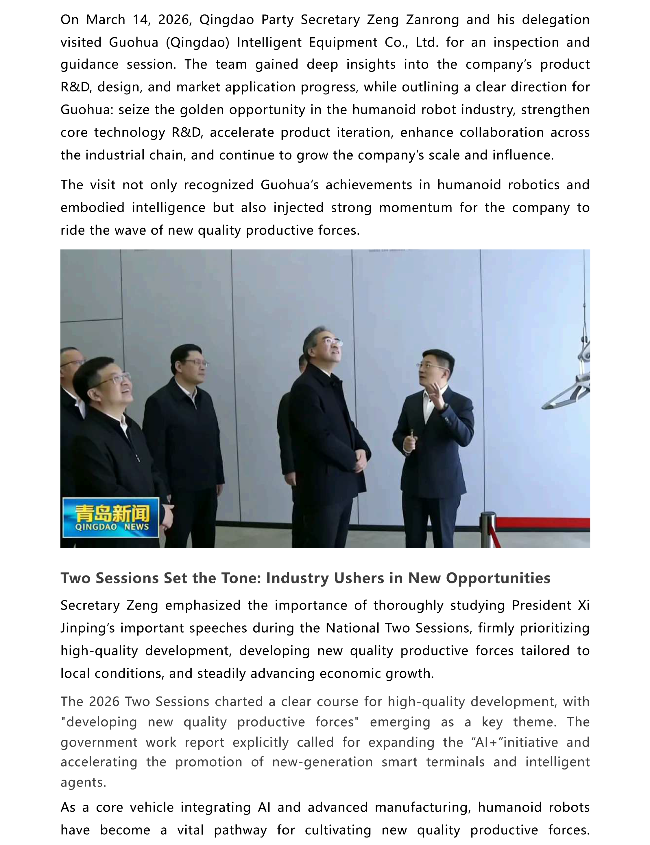 Secretary Zeng's Guidance Charts the Course | Guohua Intelligence Anchors Humanoid Robot Sector, Building New Industry Benchmarks with New Quality Productive Forces