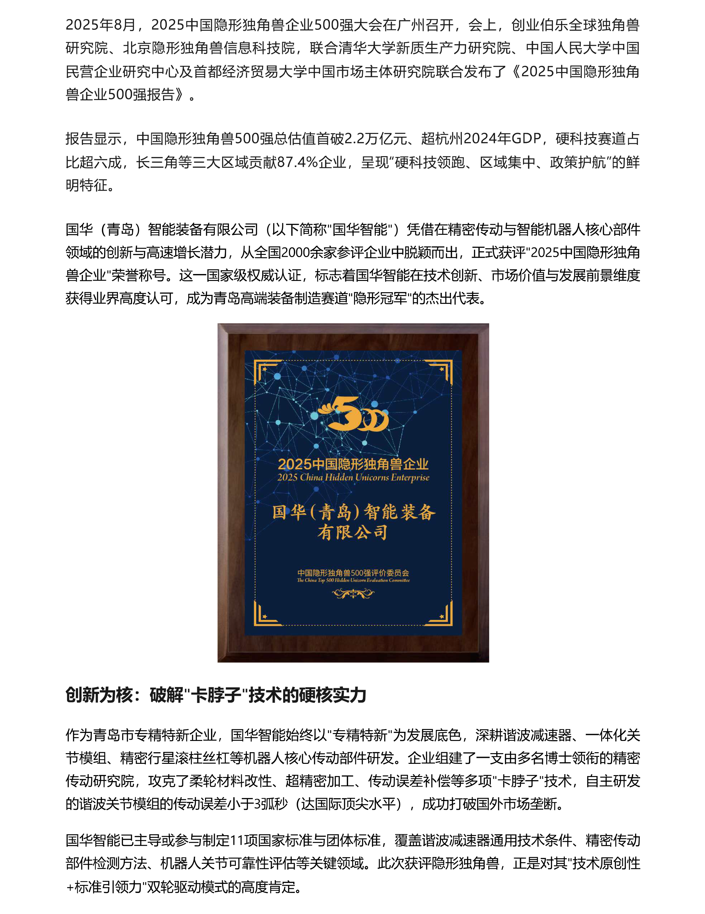 国华智能荣膺2025中国隐形独角兽企业称号 创新实力获国家级权威认证