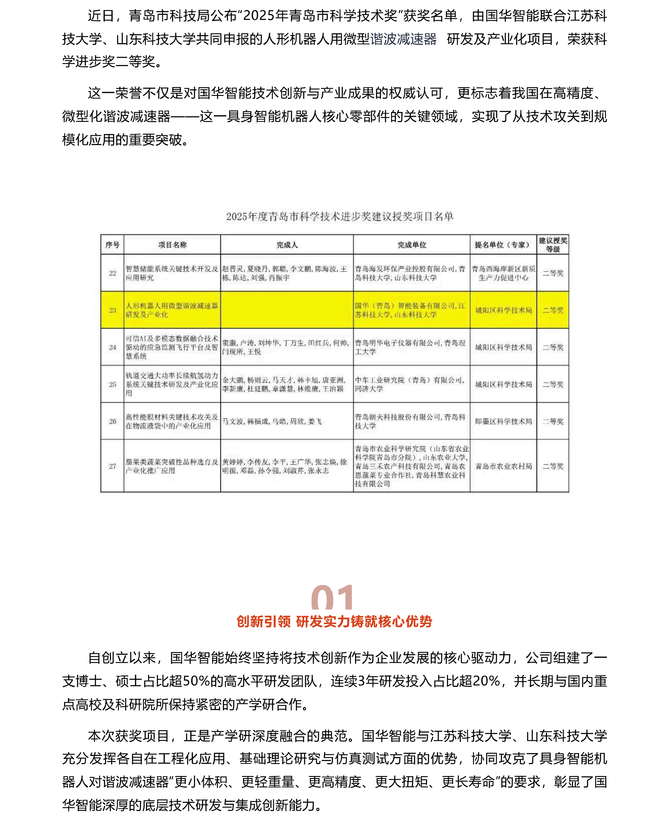 斩获2025青岛科技进步奖! 国华智能助力具身智能行业转型升级
