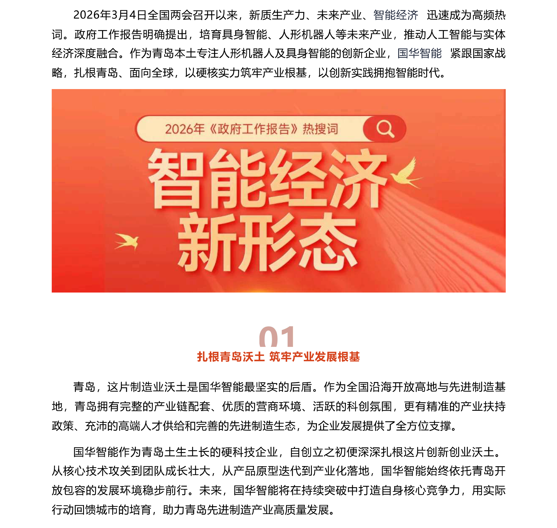 两会擘画智能未来丨国华深耕具身智能硬科技 点亮青岛制造新坐标