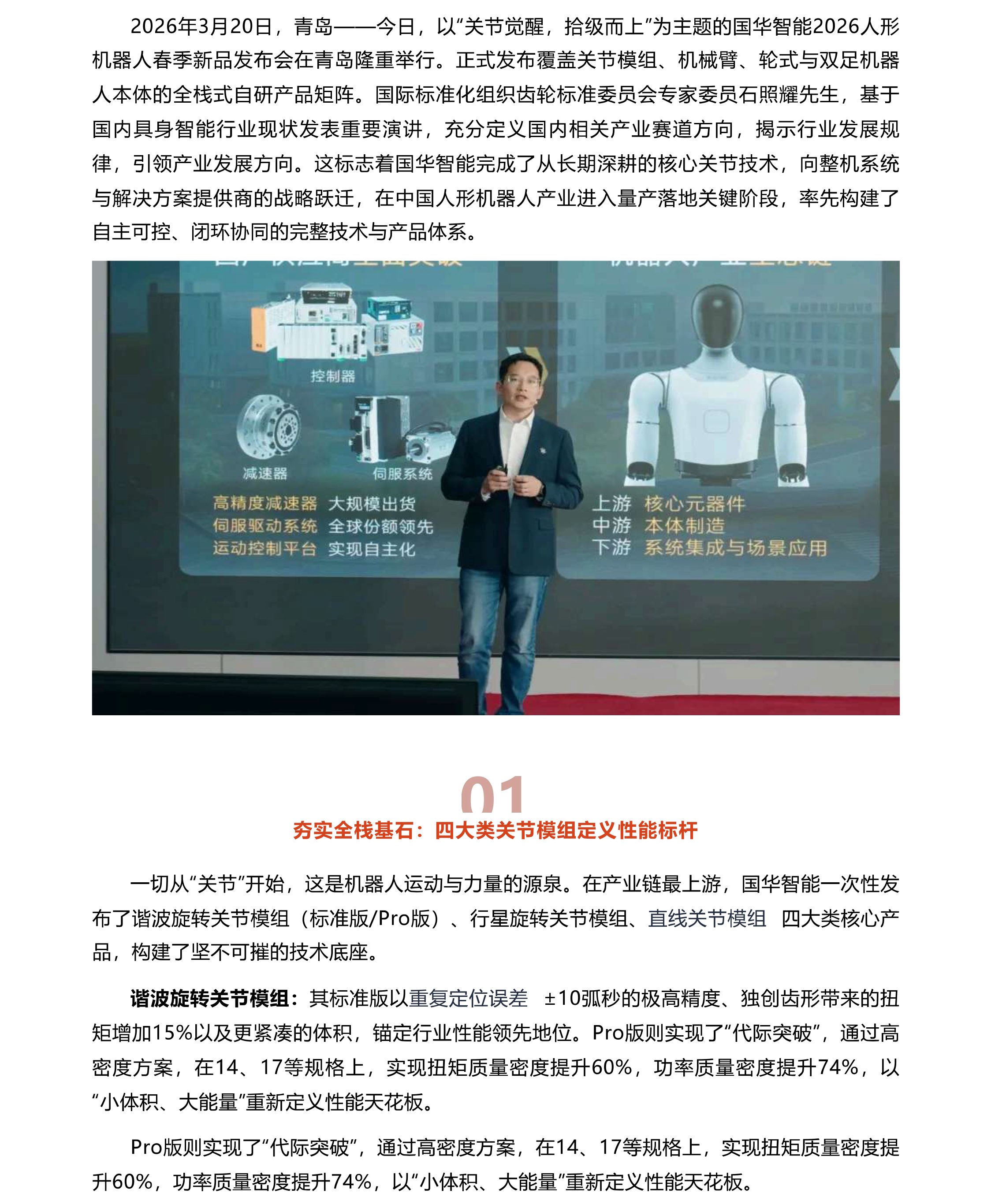 国华智能发布全栈式自研产品矩阵 完成从核心关节到整机本体的战略跃迁