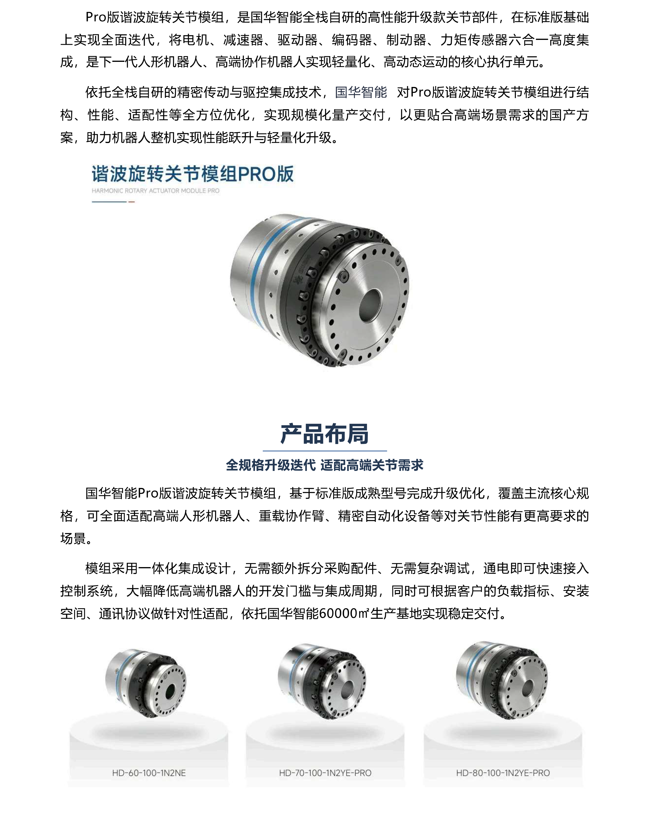 国华智能全栈自研产品系列丨Pro版谐波旋转关节模组